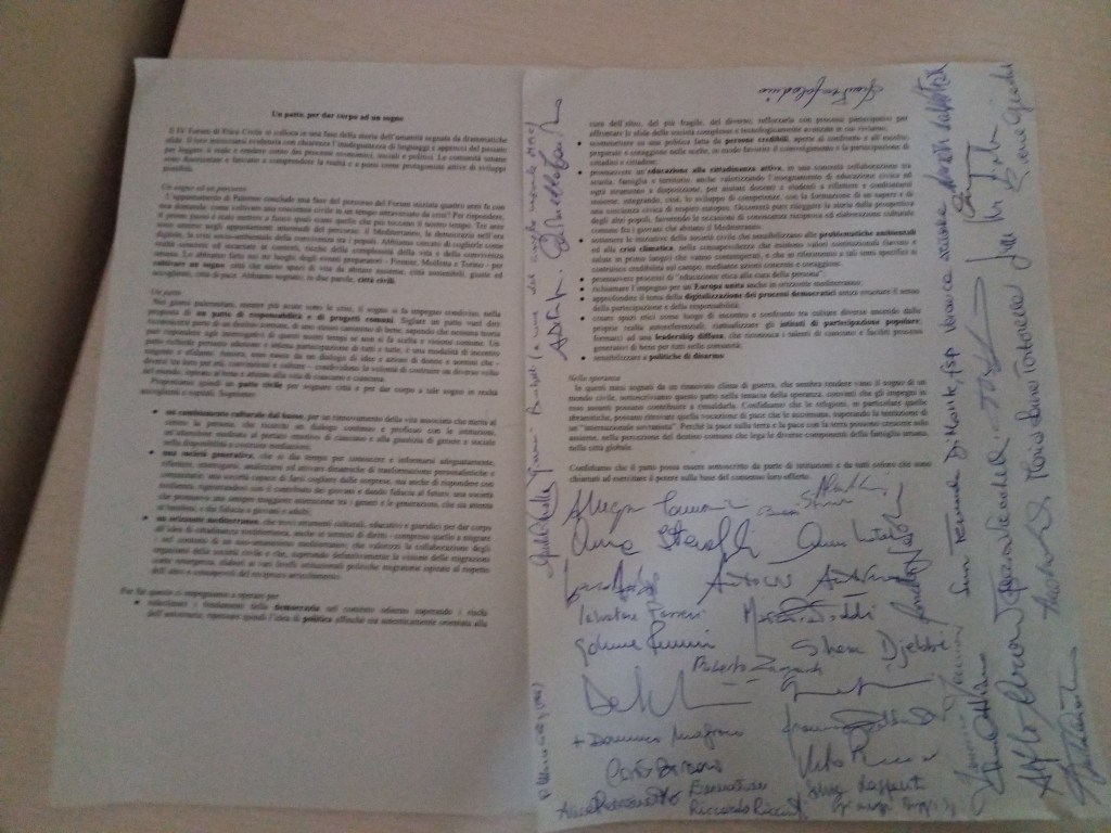 Nella giornata conclusiva del Forum è stato siglato un patto tra le associazioni e le persone che hanno partecipato ai lavori palermitani.